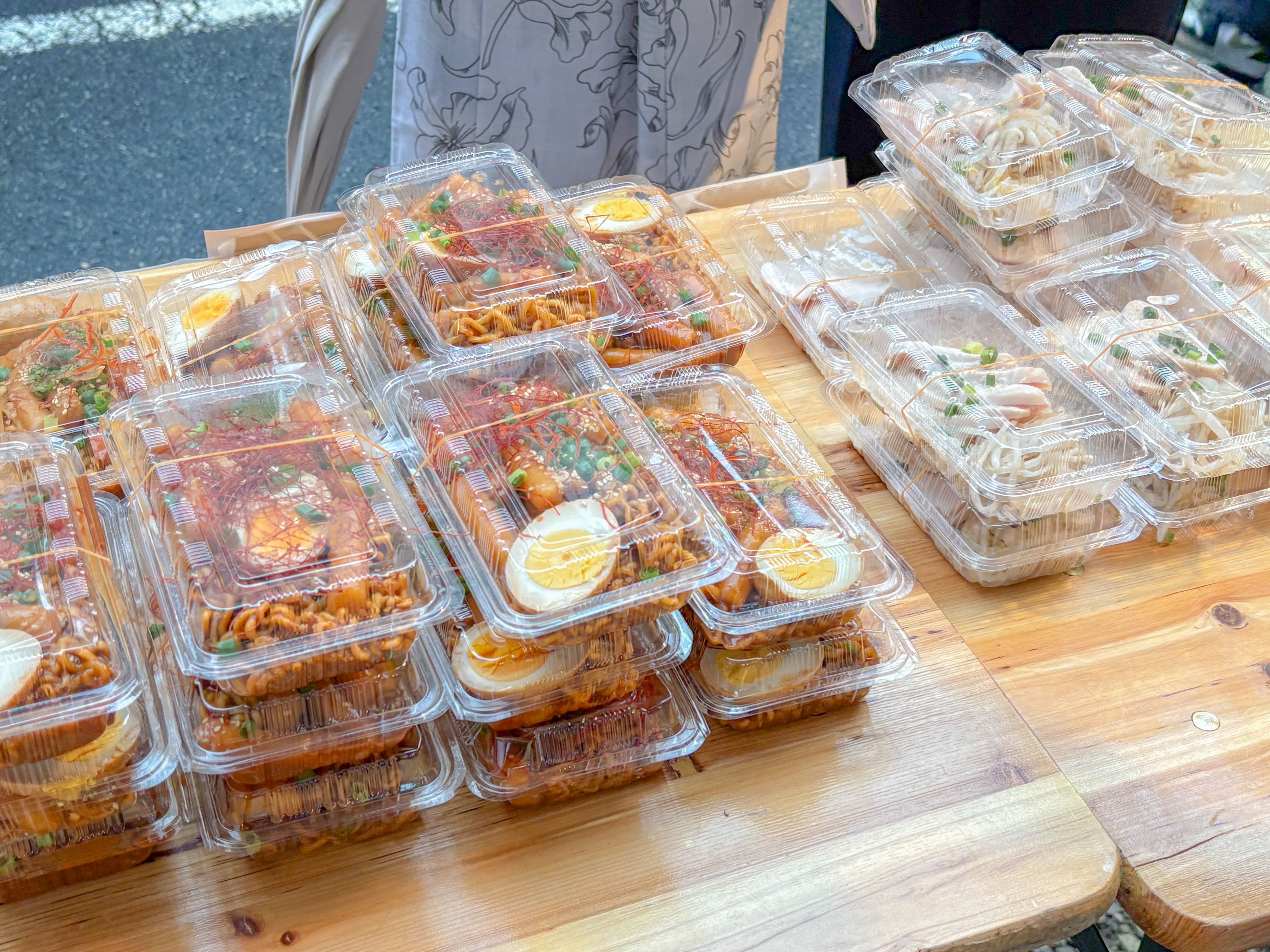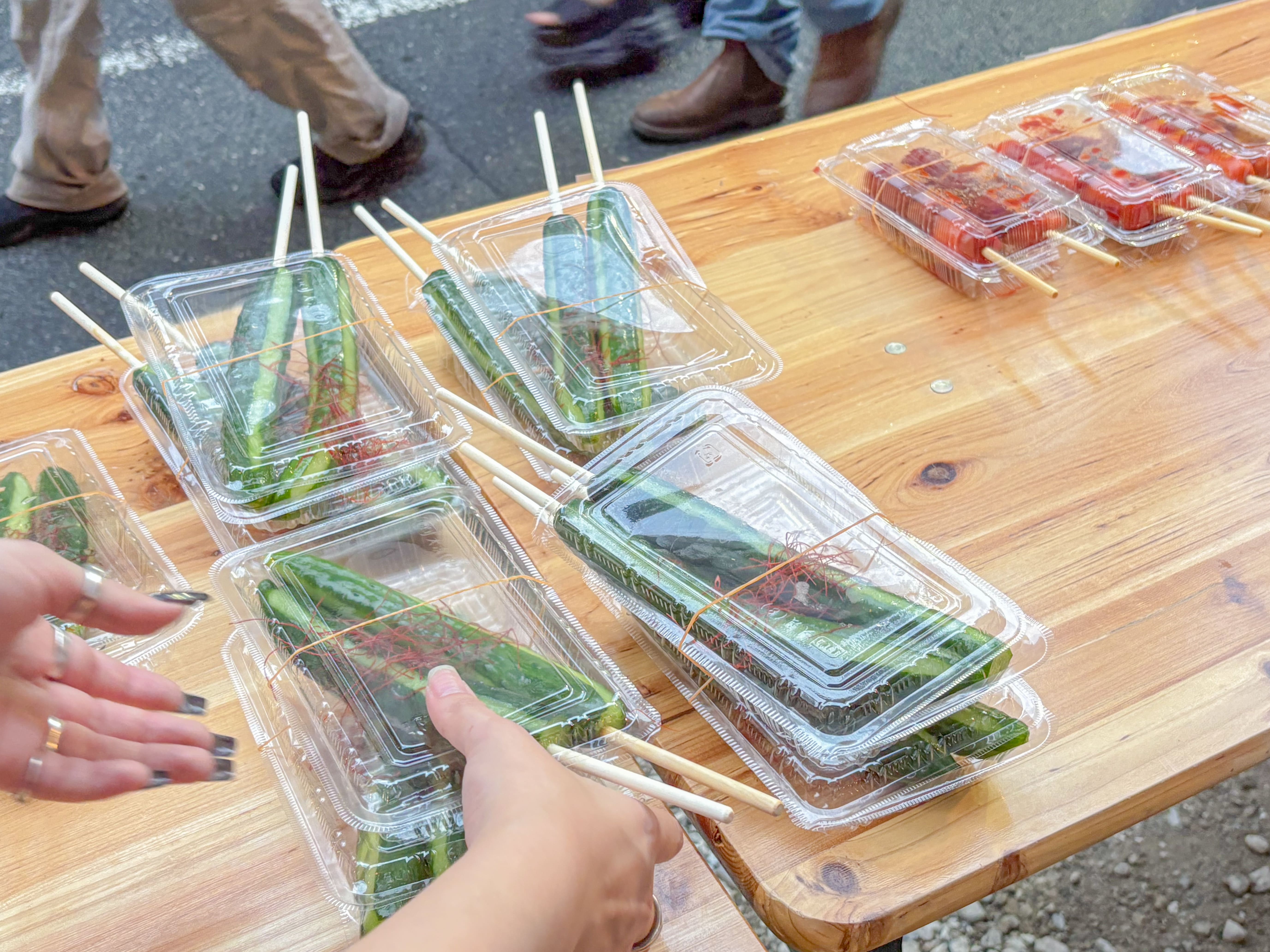夕方には小雨が降り始めましたが、花火を待つ人々が次々と立ち寄り、店内の席は早い時間から満席に。雨の中でも、浴衣姿の家族連れや友人同士が屋台料理とドリンクを手に談笑する姿があり、にぎやかなひとときが広がりました。